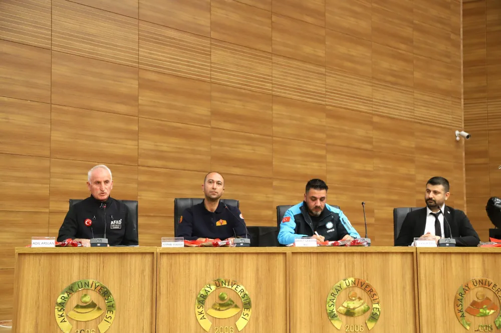 Aksaray İl Afet ve Acil Durum (AFAD) Müdürü Adil Arslan da konuşmasına depremde hayatını kaybedenleri anarak başladı. Türkiye’nin bir deprem ülkesi olduğunu vurgulayan Arslan, afetlere karşı hazırlıklı olmanın zorunluluk olduğunu ifade etti. Depremin 04.17’de meydana geldiğini ve haber alınır alınmaz ekiplerin yola çıktığını belirten Arslan, Türkiye Afet Müdahale Planı (TAMP) kapsamında hiçbir talimat beklenmeden ilgili kurumların harekete geçtiğini söyledi. Arslan, 11 ilin aynı anda etkilenmesinin müdahale sürecini zorlaştırdığını ancak buna rağmen devletin ve milletin hızlı bir refleks gösterdiğini kaydetti. Aksaray İtfaiye Amiri İsmail Bülbül ise itfaiyelerin afetlerde en hazır bekleyen kurtarma birimlerinden biri olduğuna dikkat çekti. Aksaray İtfaiyesi’nin personel kapasitesi ve vardiya sistemi hakkında bilgi veren Bülbül, depremin ilk saatlerinde herhangi bir emir beklemeden bölgeye hareket ettiklerini söyledi. Başlangıçta Hatay olarak belirlenen görev yerlerinin daha sonra Kahramanmaraş ve ardından Elbistan olarak değiştiğini ifade eden Bülbül, Elbistan’a ulaşan ilk kurtarma ekiplerinden biri olduklarını hatırlattı.