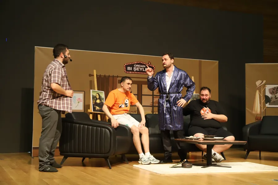 ASÜ Konferans Salonunda gerçekleştirilen ve yazarlığı ile yönetmenliğini Alperen Sazlı’nın rejiliğini ise Taha Mehmet’in üstlendiği etkinlikte; Fatih Yaylacı, Bahar Çınar, Kerem Gürsoy, İrem Çıray, Hakan Yiğittürk, Zeynep Güven, Safa Yuvayapan, Doğan Tekin ve Kadir Andaç’tan oluşan oyuncu kadrosu performanslarıyla büyük beğeni topladı. Programa ASÜ Rektör Yardımcıları Prof. Dr. Ömer Köse, Prof. Dr. Erşan Sever ve Prof. Dr. Yavuz Selim Çakmak’ın yanı sıra dekanlar, akademik ve idari personel ile çok sayıda öğrenci katılım sağladı. Sunuculuğunu Alperen Sönmez’in yaptığı programda, iki ayrı gösterimde toplam beş farklı skeç sahnelendi. Güncel konulara mizahi bir dille yaklaşan ve yer yer doğaçlama unsurların da yer aldığı performanslar, salonda kahkaha dolu anların yaşanmasını sağladı. Oyuncuların yüksek sahne enerjisi ve seyirciyle kurduğu güçlü iletişim, özellikle öğrencilerin yoğun alkışlarıyla karşılık buldu. Etkinliğin sonunda sahneye çıkan “Ordan Bi Şeyler” ekibi izleyicileri selamlayarak teşekkürlerini iletti. Program, Rektör Yardımcısı Prof. Dr. Ömer Köse tarafından oyunculara günün anısına çiçek takdim edilmesi ve çekilen hatıra fotoğrafları ile sona erdi.