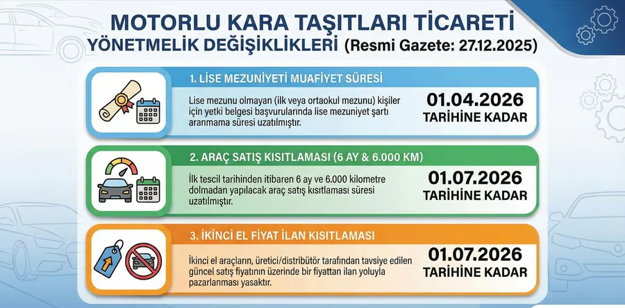 Ayrıca, ikinci el araç satışlarında uygulanan “ilk tescil tarihinden itibaren 6 ay ve 6.000 kilometre dolmadan satış yapılamaz” kuralının 1 Temmuz 2026 tarihine kadar uzatıldığını dile getiren Koçaş, söz konusu düzenlemenin piyasa dengesini korumaya yönelik önemli bir adım olduğunu ifade etti.